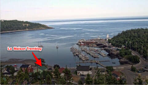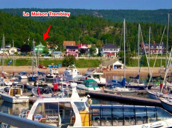 West side of Tadoussac Bay with marina. Tremblay House is located beneath the arrow.
